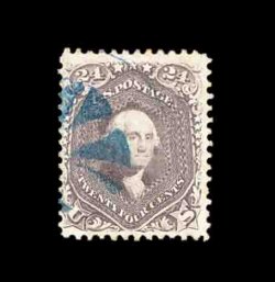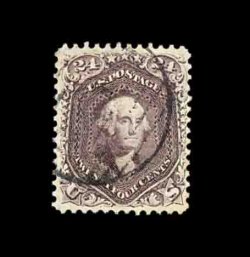 128 O 70 image#70, 24c Red lilac, a most attractive used single, possessing outstanding rich color and impression, and being exceptionally well centered within much larger margins than normally encountered on the Twenty-Four Cent value, light "Paid" in grid cancel, extremely fine; 1988 PF certificate. (Image) 190.00