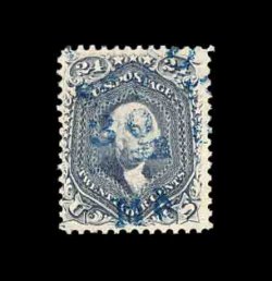 130 O 70b image#70b, 24c Steel blue, an eye-catching used example of this scarce and often misidentified shade, possessing unmistakable steel blue color in a spectacularly rich shade and an excellent clarity of impression, well centered within exceptionally large margins, blue town cancel, choice very fine; 1996 PF certificate. (Image) 725.00