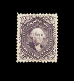131 og 70c image#70c, 24c Violet on thin paper, an immensely rare mint example, possessing far better centering than normally encountered on this very difficult value, faintly toned but with unmistakable violet color, slightly disturbed o.g., very fine appearance; only a handful of mint Twenty Four Cent Violet stamps exist in any condition; 2001 PF certificate. (Image) 10,000.00