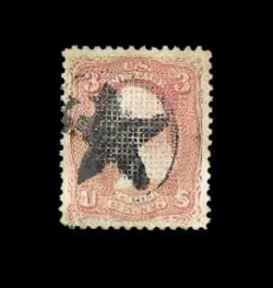 140 O 83 image#83, 3c Rose, "C" grill, an especially handsome used example of this scarce grilled stamp, being exceptionally well centered within extravagantly large margins which are most uncharacteristic of this stamp, cancelled by a fancy black star in circle, extremely fine and choice; 1984 PF certificate. (Image) 1,000.00