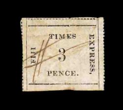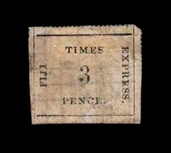 1399 c S.G. #2 imageS.G. #2, 1870 3p Black on rose quadrille paper, position 21, a marvelous single franking on extremely rare and important "Fiji Times Express" cover, the stamp has three well clear to large margins and close to just along the frame at left, despite the small barely apparent faults at the top this stamp is quite attractive and more sound than any of the stamps on the known first issue covers, this value is the sole Fiji franking paying the three pence rate, this stamp along with a New South Wales 3p Green (S.G. #158) are both tied to a petite pink cover to Brunswick, Melborne, Victoria by "Sydney/ 70 DE 10/ NSW" duplex, backstamped on the 17th in Melborne and Brunswick, this cover is marvelously well preserved and far better than any of the other known "Fiji Times Express" covers, having only some tears on front and back at extreme left from opening, in overall condition this is very fine. The "Fiji Times" instituted a mail service that started the first of November, 1870. Its real purpose was to provide a system of mail delivery within the Fiji islands so that their newspaper could be efficiently delivered and circulation would increase. Because normal mail service was so poor they also accepted other mail for transmittal within the islands, from outside Fiji to Fiji destinations and from various localities in Fiji to destinations outside the country. The only known examples that have survived are from this last group. Three covers (all of which are found in the Meis collection) and one front are the only known covers with the first quadrille paper "Fiji Times Express" stamps. There are also three covers and a front with the second issue on laid batonne paper. These eight items, other than the stamps themselves, constitute the entire postal history of this interesting service. The cover offered here is outstanding and unique in a number of respects. First, it is the earliest known cover. Secondly and related to this early usage, is the fact that it is the only known of all the covers that has the 3p rate used prior to the rate change on December 17, 1870. It comes from the well known Dods correspondence, which has provided us with three of the other known "Fiji Times Express" covers. And finally, of all the complete "Fiji Times Express" covers this is in the best condition. Others are far more faulty in either the stamp or cover and usually both. This cover is the most important of the "Fiji Times Express" covers for its rare rate that existed for only 46 days and exceptional attractive appearance. This is an incredible rarity of this country and one of the premiere world rarities of any country; ex-Langerhoef and Burrus (Scott #2). (Image) Est. 15,000-20,000