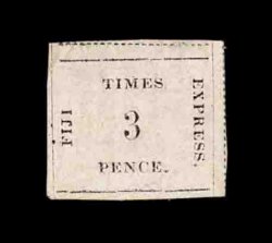 1393 ng S.G. #2 imageS.G. #2, 1870 3p Black on rose quadrille paper, position 22, this is the position that comes with a comma after "Express", as listed by Stanley Gibbons for the 9p on laid batonne paper, on this stamp it looks more like a malformed period, unused single with full even margins, nearly complete rouletting at left, color is a bit faded, small faults including small thin spot, very fine appearance; 1966 PF certificate (Scott #2; $2,750.00). (Image) £3,500