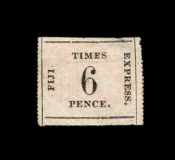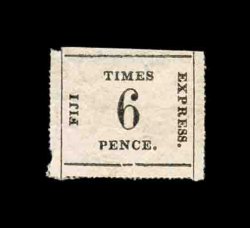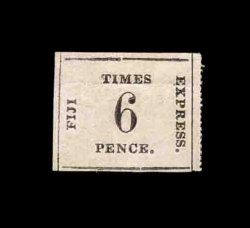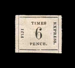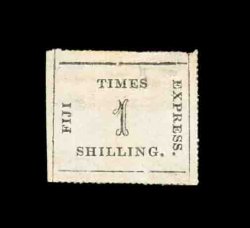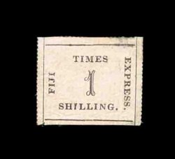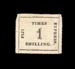 1417 ng S.G. #9 var. imageS.G. #9 var., 1871 1/- Black on deep rose laid batonne paper, position 11, an exquisite unused example of this scarce shade variety, while the catalogs do not make mention of this shade it has long been recognized that the second issue comes in two distinct colors, the normal rose, which is similar to the first issue though usually a little brighter, and a deep rose that the Robson Lowe Encyclopedia calls rare, this stamp is an exceptional example with full rouletting on three sides and with large matching margin at bottom showing about half the rouletting, also completely sound, lacking the faults that nearly all of the "Fiji Times Express" stamps have, extremely fine in all respects; 1987 RPS certificate (Scott #10 var.; $1,500.00+). (Image) £1,200+