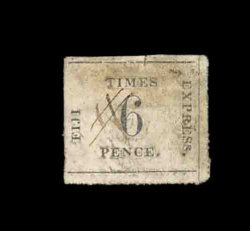 1409 ng S.G. #7 imageS.G. #7, 1871 6p Black on rose laid batonne paper, position 6, an impressively margined unused single from the corner of the sheet, nearly full rouletting at left and bottom, fresh with light rose color, this stamp is virtually sound lacking the typical faults that are usually found on these issues, extremely fine; 1967 RPS certificate (Scott #8; $1,300.00). (Image) 1,100.00