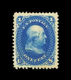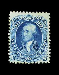 167 ng 101 image#101, 90c Blue, "F" grill, a rare unused example, sumptuously rich color and an excellent clarity of impression on fresh paper, attractively centered, well defined grill, possibly reperforated at top, nearly very fine appearance. (Image) 5,250.00