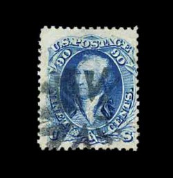 168 O 101 image#101, 90c Blue, "F" grill, nicely centered within extra-large margins, strong rich color and a crisp impression, neat circle of "V's" cancel, a very fine example of this scarce high value; 1979 and 2001 PF certificates. (Image) 1,500.00