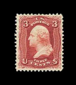 174 og 104 image#104, 3c Brown red re-issue, especially centered and margined for this value, strong rich re-issue color and impression, full clean o.g., lightly hinged, a very fine and choice example of this rare stamp; only 465 issued; 2002 PF certificate. (Image) 3,750.00
