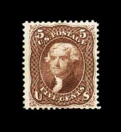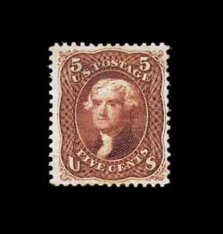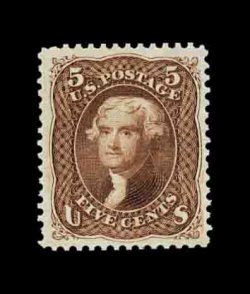176 ng 105 image#105, 5c Brown re-issue, unused, extraordinarily well centered within huge margins, strong rich color and a sharp re-issue impression, small corner crease, extremely fine appearance; 1969 PF certificate. (Image) 1,750.00