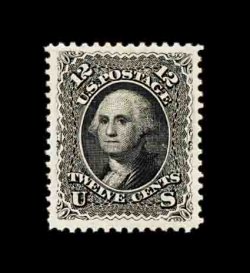 180 og 107 image#107, 12c Black re-issue, a fabulously choice mint example of this re-issue rarity, being remarkably well centered within extra-large margins, intense "jet" black color and a deeply etched impression on bright crisp paper, full original gum, lightly hinged, extremely fine; scant few of the 389 issued are found in this gem condition; 1994 PF certificate. (Image) 4,500.00