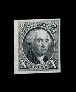 11 og 4 image#4, 10c Black reproduction, without gum as issued, particularly large margins all around, strong color and impression, light ms. number on reverse, extremely fine; ex-Chapin. (Image) 900.00