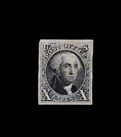 8 O 2 image#2, 10c Black, handsome used example, four uniformly large and even margins, exceptional deep color, far more detailed and well etched impression than usual on deeply blued paper, very light and unobtrusive red postmark, extremely fine; 1985 PF certificate; ex-Chapin. (Image) 1,350.00