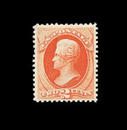 281 og 178c image#178c, 2c Vermilion, with "J" grill, pristine example of this rare grill variety, incredibly fresh, gorgeous radiant color, marvelously well centered within large margins, full o.g. which shows excellent grill impression and only penetrates paper at a few points (these grills typically cut the paper quite heavily), lightly hinged, extremely fine; one of the finest examples of this undervalued stamp we have seen; ex-Close and Chapin. (Image) 750.00