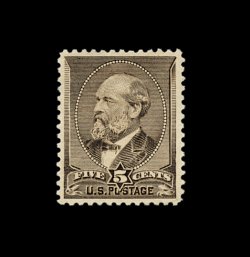 301 og 205C image#205C, 5c Gray brown special printing, without gum as issued, virtually perfectly centered amid large margins, rich luxuriant color and a razor-sharp impression, completely free of the flaws which affect several of the known copies, fully intact and even perforations, extremely fine gem. An incomparable example of this incredibly rare stamp. A total of only 22 different copies have been certified by the Philatelic Foundation as genuine Five Cent Garfield Special Printings. Because of the extreme rarity of this stamp, very few collectors will ever have a chance to own a copy of this elusive special printing, and fewer still can acquire one in such outstanding quality. Accompanied by a 1949 PF certificate (submitted by J.K. Lilly); ex-Lilly. (Image) 40,000.00