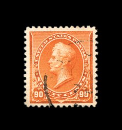 308 O 229 image#229, 90c Orange, gem used example, extraordinarily well centered amid lavishly large margins, strikingly intense color and impression on bright paper, very light and unobtrusive cancel (instead of the more commonly seen heavy registry oval), extremely fine; a surprisingly challenging stamp to find used in this premium condition; 1995 PF certificate. (Image) 130.00
