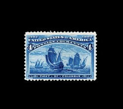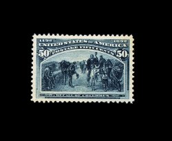 314 og 240 image#240, 50c Columbian, an impressive mint example that features extravagantly large margins and is incredibly well centered within them, deeply rich color and a crisp detailed impression, o.g., relatively lightly hinged, an extremely fine gem; Fifty Cent Columbians are rarely seen with such large and perfectly balanced margins; 2000 PF certificate. (Image) 600.00