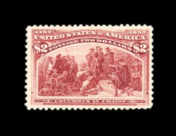 315 og 242 image#242, $2.00 Columbian, well centered within uncharacteristically large margins, beautiful rich color and a sharp detailed impression, full clean o.g., lightly hinged, extremely fine and handsome; 2001 PF certificate. (Image) 1,300.00