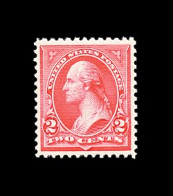 319 nh 251 image#251, 2c Carmine, Ty. II, gem mint single that would please even the most demanding condition conscience collector, featuring exceptional centering amid very large margins most uncharacteristic of this, gloriously rich and radiant color, prooflike impression on immaculate paper, unblemished o.g., n.h., extremely fine; a very scarce and desirable stamp in this gem quality; 2002 PF certificate. (Image) 650.00