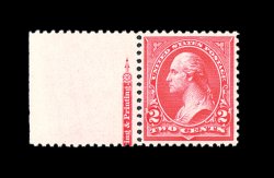 320 nh 252 image#252, 2c Carmine, Ty. III, gem left sheet-margin partial imprint single, incredibly fresh, sumptuously rich color in a deep shade, well incised impression, near perfect centering, immaculate o.g., n.h., extremely fine; 2003 PF certificate. (Image) 260.00