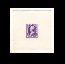 321 P 253AP1 image#253AP1, 3c Purple, large die proof, Ty. II triangles, scarce example of this proof which is essentially an essay design as this stamp was issued with Ty. I triangles in the top corners, nevertheless the Scott catalog lists these under the proof section, die sunk on clean card measuring 70x71mm, very fine. (Image) 325.00