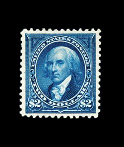 328 og 277 image#277, $2.00 Bright blue, near perfect centering within uncharacteristically large margins, luxuriously rich color in a deep shade, strong detailed impression contrasting nicely with its bright fresh paper, o.g., lightly hinged, extremely fine and handsome; 1994 PF certificate. (Image) 1,100.00