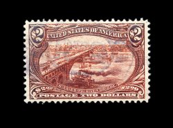 336 O 293 image#293, $2.00 Trans-Mississippi, beautiful used example of this high value commemorative, possessing remarkably large margins that are quite uncharacteristic, and being incredibly well centered within them, deep luxuriant color and a sharp detailed impression on bright paper, very light and unobtrusive registry oval postmark, extremely fine gem; 1997 PF certificate. (Image) 1,000.00