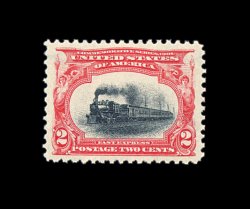 339 og 296a image#296a, 4c Pan-American, Center Inverted, magnificently bright and fresh, deep luxuriant colors and strong impressions, exceptionally well centered within large margins, full clean undisturbed o.g., lightly hinged, extremely fine. A spectacular and highly desirable example of this important 20th century rarity. In a quality which ranks it among the very finest, if not the finest, in existence, as it is among the scant few that are not only well centered and sound, but it is also without the disturbed gum which is present on the vast majority of known copies (as well as one of the few whose accompanying certificate simply states "previously hinged"). There were two sheets of 100 each of the Four Cent Pan-American with centers inverted intentionally made for Post Office records. An unknown number of these were overprinted "Specimen" and still others were destroyed. The non-"Specimen" examples were mounted in a Post Office Department book resulting in the vast majority of them having disturbed gum, and a number were also thinned in an effort to remove them from mounting paper. Very few exist today with completely undisturbed original gum and/or free of faults. The catalog value quoted in Scott is for copies with disturbed gum and, of course, the remarkably few that exist in premium condition with full undisturbed gum such as this command substantial premiums over the catalog price. Accompanied by a 2002 PF certificate. (Image) 30,000.00