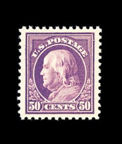 392 nh 517 image#517, 50c Red violet, gem mint single, flawlessly centered amid extra-large margins, eye-arresting intense color and impression that would rival any proof, especially even and intact perforations all around, o.g., n.h., extremely fine; a stamp for the perfectionist; 1997 PF certificate. (Image) 130.00