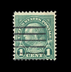 394 O 594 image#594, 1c Green coil waste, an exceptionally choice and desirable used example of one of the rarest and most difficult stamps of the 20th century, with fewer than 100 examples confirmed, being among the very few known examples whose perforations clear the design all around and is completely free of the flaws which affect so many of the existing copies, wonderfully rich and bright color, well incised impression, neat crisp strike of a machine cancel, very fine; a stamp that is missing in even the most advanced United States collections; signed by George B. Sloane and accompanied by his 1934 letter of authenticity, along with a 2002 PF certificate. (Image) 6,750.00