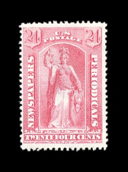 420 og PR41 image#PR41, 24c Pale rose special printing, without gum as issued, choice example of this rare stamp, bright fresh color and a crisp impression on brilliantly white paper, unusually intact perforations for a Special Printing, very fine; only 411 issued; 2003 PF certificate. (Image) 1,800.00