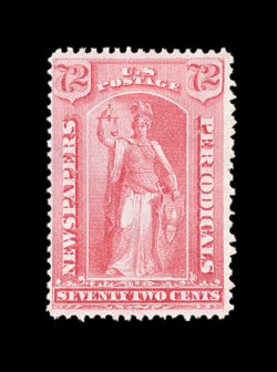 422 og PR45 image#PR45 72c Pale rose special printing, without gum as issued, attractive example of this truly rare stamp, of which only 174 were issued, quite well centered, bright fresh color and impression, certainly very fine for this seldom offered stamp; 2003 PF certificate. (Image) 3,750.00