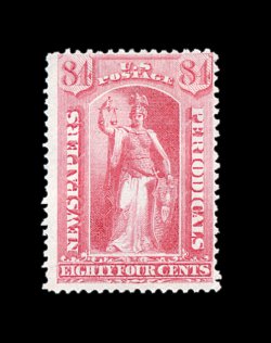423 og PR46 image#PR46, 84c Pale rose special printing, without gum as issued, most attractive example of this rare special printing, with its perforations clearing the design all around (a seldom seen trait), bright distinctive special printing color on crisp paper, certainly very fine when compared to the existing population; only 164 of this value were issued; 2003 PF certificate. (Image) 4,000.00