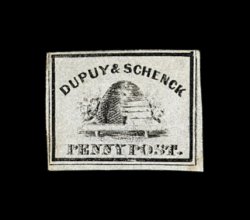 436 og 60L2 image#60L2, Dupuy & Schenck, New York, N.Y., (1c) Black on glazed paper, unused, four full to large margins, quite fresh, very fine and choice; 1998 PF certificate. (Image) 175.00