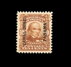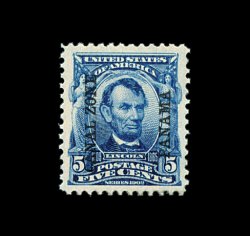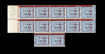 500 ogbl 12 var. image#12 var., 5c Blue, "Panama" overprint shifted to the left, irregular left margin block of twelve, the shifted overprint causes portions of three "Panama"'s to appear on some stamps, while positions 5 and 10 show only one "Panama" overprint, small part o.g., fine; a most unusual and eye-catching error (CZSG #12.24). (Image) Est. 300-400