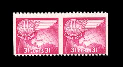 586 og C25a image#C25a, 31c Cerise, imperforate vertically, horizontal pair, positions 13-14, deep color, centered to the bottom as are all known examples of this error, o.g., lightly hinged, fine; only 98 pairs have been recorded (CZSG #C25a). (Image) 1,000.00