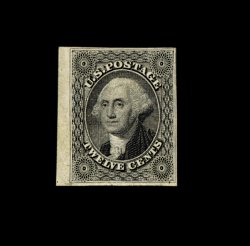 64 og 17 image#17, 12c Black, handsome example of this rare and difficult mint classic, with four ample to huge margins, including a sizable sheet margin at left, deep shade and a highly detailed impression, full clean o.g. that has been only lightly hinged, faint vertical crease not at all affecting this stamp's exceptional very fine appearance; an especially elusive stamp to find still retaining its original gum; 1979 PF certificate; ex-Chapin. (Image) 5,250.00