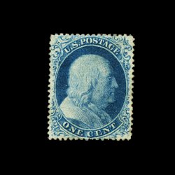 71 og 21 image#21, 1c Blue, Ty. III, the mint example offered here is one of a very few completely sound original gum copies of Scott #21 in existence, as this exceedingly rare mint stamp is usually found with varying degrees of faults and seldom with original gum, this particularly copy is especially select as it possesses an excellent overall freshness, with strong rich color and a deeply etched impression which clearly shows a wide break at top and a distinct break at bottom, wonderfully well centered, full o.g., h.r., a very fine and choice example of a stamp that is missing in even the most advance collections of mint U.S. stamps; easily one of the rarest stamps in this year's "Premier Sale"; 1957 PF certificate; ex-Chapin. (Image) 12,500.00