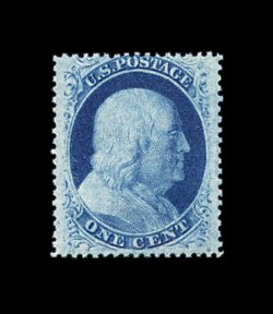 74 og 22 image#22, 1c Blue, Ty. IIIa, plate 11, marvelously choice mint example, possessing an exceptional overall brilliance and freshness, with rich luxuriant color and impression, wonderfully well centered and margined, full o.g., relatively lightly hinged, extremely fine; an especially scarce mint stamp in this premium condition; ex-Chapin. (Image) 2,000.00