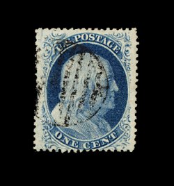 83 O 24b image#24b, 1c Blue, Ty. IV, laid paper variety, used, well centered within large margins, rich color, light strike of circular grid postmark, very fine; listed but unpriced in Scott; the first certified example we have seen; 1992 PF certificate; ex-Chapin. (Image) Est. 200-300