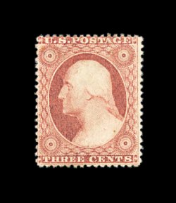 85 og 26 image#26, 3c Dull red, Ty. II, premium mint single, brilliantly fresh, with intense color in a much deeper shade than usual, well centered, pristine o.g., barest trace of hinging, extremely fine; ex-Chapin. (Image) 75.00