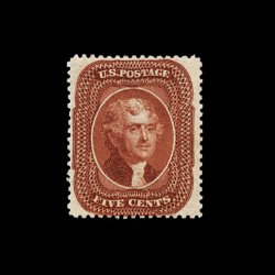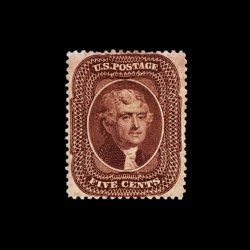 90 og 30A image#30A, 5c Brown, Ty. II, extraordinarily well centered, luxuriously rich color and a deeply etched impression, nearly full o.g., extremely fine; a much more challenging stamp to find in this premium condition than its Orange Brown counterpart (Scott #30); 1977 PF certificate; ex-Chapin. (Image) 2,000.00