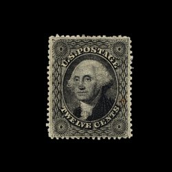 98 og 36b image#36b, 12c Black, plate III, unusually well centered for this always challenging stamp, deep rich color and impression, full clean o.g., relatively lightly hinged, extremely fine for this and quite elusive thus; ex-Chapin. (Image) 775.00