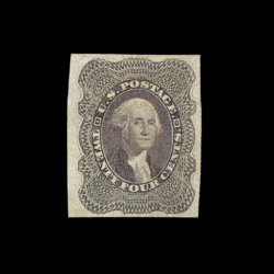 102 og 37c image#37c, 24c Lilac, imperforate, exceptional unused example of this rare imperforate variety, without gum as issued, possessing large margins, all well clear of the design unlike most other surviving copies, extremely fine; 1953 PF certificate; ex-Chapin. (Image) 1,500.00
