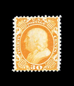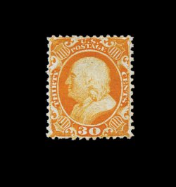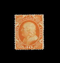 103 og 38 image#38, 30c Orange, an outstanding mint example that is not only extraordinarily well centered, but brilliantly fresh as well, gorgeous intense color in a deep shade, without any hint of oxidizing so often encountered on orange colored stamps, strong detailed impression on bright paper, full o.g., minor h.r., extremely fine; few original gum examples are as fresh and choice as this particular copy; ex-Chapin. (Image) 1,900.00