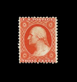 109 og 41 image#41, 3c Scarlet reprint, without gum as issued, incredibly well centered for this notoriously difficult reprint rarity, absolutely stunning color in an intensely radiant shade, plus its impression is extraordinarily sharp on bright paper, extremely fine; a premium example of this value, of which only 479 were issued; ex-Chapin. (Image) 3,500.00