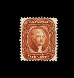 110 og 42 image#42, 5c Orange brown reprint, without gum as issued, exceedingly well centered and margined for this particular value, deep luxuriant color on bright paper, extremely fine for this; only 878 issued; ex-Chapin. (Image) 1,250.00
