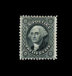 112 og 44 image#44, 12c Greenish black reprint, without gum as issued, a most impressive example of this rare stamp, possessing outstanding centering which is almost impossible to find on this value, strong rich color and impression, fully intact and even perforations which is a most uncommon trait as well, an extremely fine gem; one of the finest of the 479 issued; an especially rare and desirable stamp in this premium condition; ex-Chapin. (Image) 3,500.00