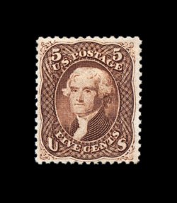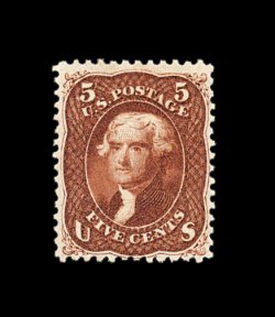 161 og 75 image#75, 5c Red brown, incredibly fresh and crisp mint example, possessing spectacularly intense color and a deeply etched impression on immaculate paper, well centered, full clean o.g., lightly hinged, very fine and exceedingly choice; a challenging mint stamp to find in any kind of collectable quality, especially with original gum; 1988 PF certificate; ex-Caspary, Hetherington and Klein. (Image) 4,750.00