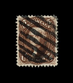 166 O 76a image#76a, 5c Black brown, superbly centered amid extravagantly large margins, gloriously rich color and impression on bright paper, bold perfectly struck rimless grid cancel, extremely fine; a striking large-margined gem; 1990 PF certificate; ex-Chapin. (Image) 200.00