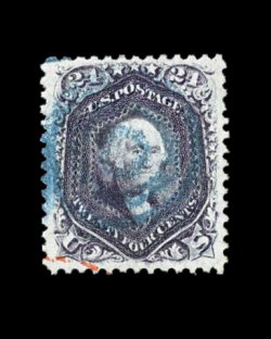 167 O 78 var. image#78 var., 24c Dark lilac, the used stamp offered here has to be considered as the quintessential example of this rare and distinctive Scott-listed shade variety, as every aspect of this stamp is truly breathtaking, including being incredibly well centered amid huge jumbo margins for any classic stamp, let alone a notorious 24c value from the 1861-62 series, but even more impressive is this stamp's spectacular color in a shade so deep that it could easily be mistaken for the enormously rare blackish violet variety, incredibly detailed impression on bright fresh paper, beautifully cancelled by a blue target and a bit of a red transit c.d.s., an extremely fine gem for the knowledgeable collector who will appreciate the remarkable qualities of this stamp; 2003 PF certificate. (Image) 132.50