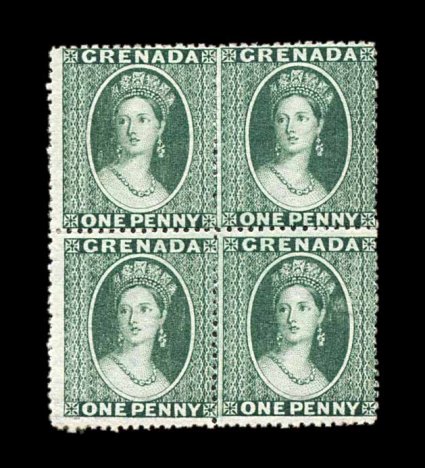 197 ogbl S.G. #10 S.G. #10, 1873 1p Deep green, clean cut perf. 15, wmk. sideways small star, fresh mint block of four, bright rich color, o.g., h.r., attractive fine centering; scarce in blocks (Scott #5B; $280.00+) (Image) £340+